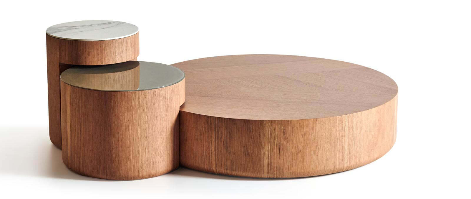 عند ترتيبها معًا، تُشكّل الطاولات تركيبة بصرية مميزة تعبّر عن البساطة الراقية وتناسب مختلف أنماط الديكور من المودرن إلى السكندينافي.