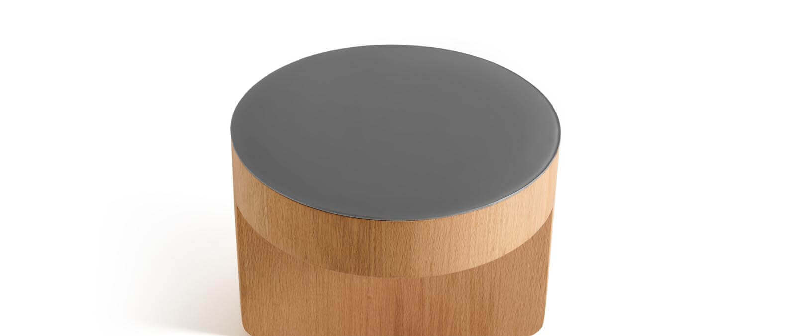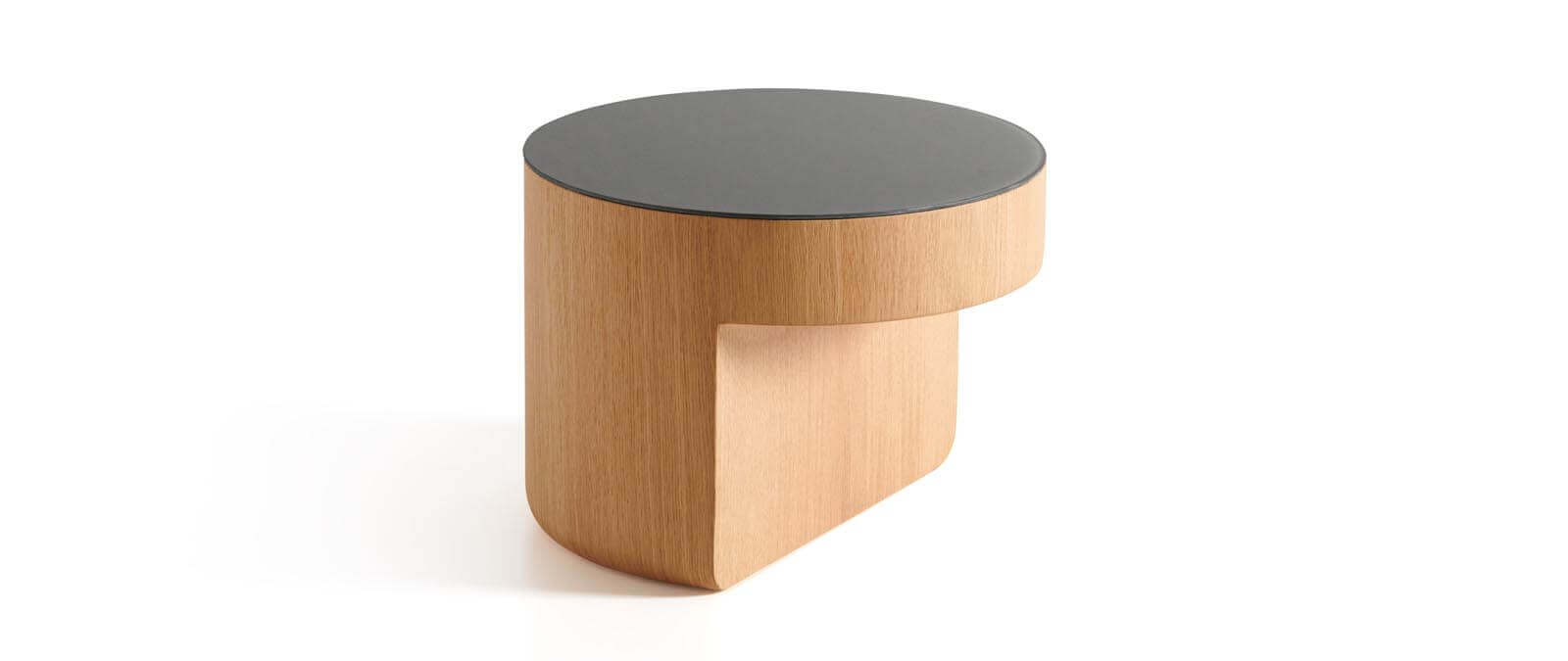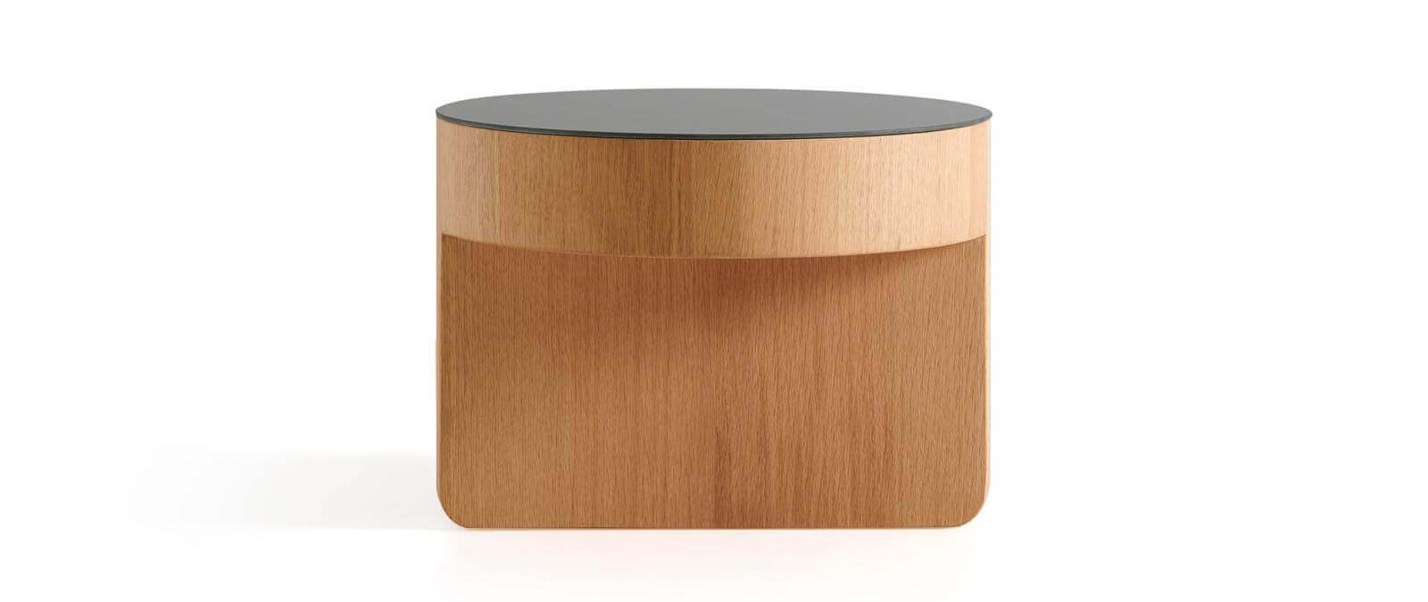 مصنوعة من خشب البلوط المصمت بألوان طبيعية وأسود مصبوغ، مع تطعيمات أنيقة من زجاج مطفي (أسود أو أبيض) أو سطح رخامي بسُمك 20 مم.