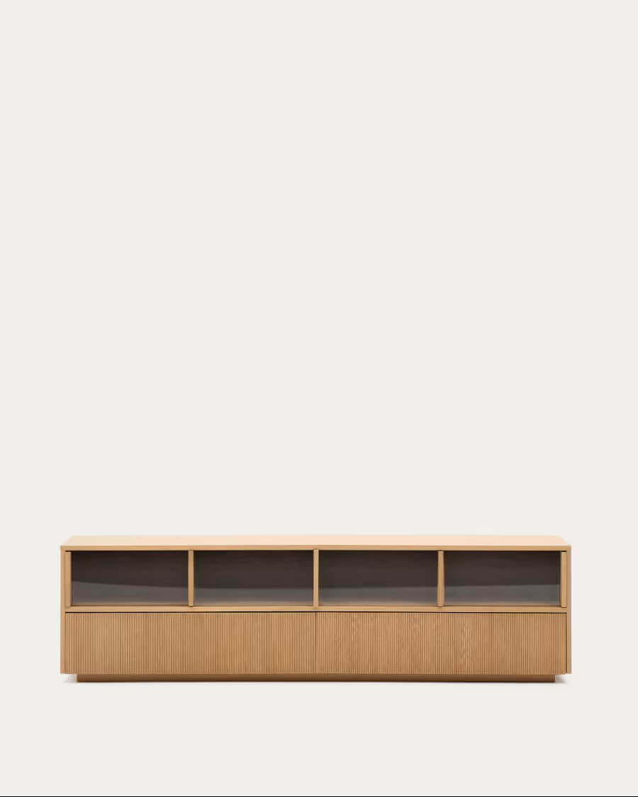 وحدة تلفزيون أنيقة بطول 200 × 54 سم بتصميم عصري بسيط مستوحى من جمال الطبيعة ودفء الخشب.
